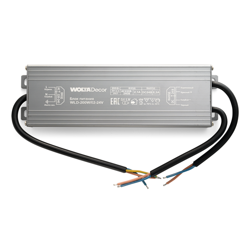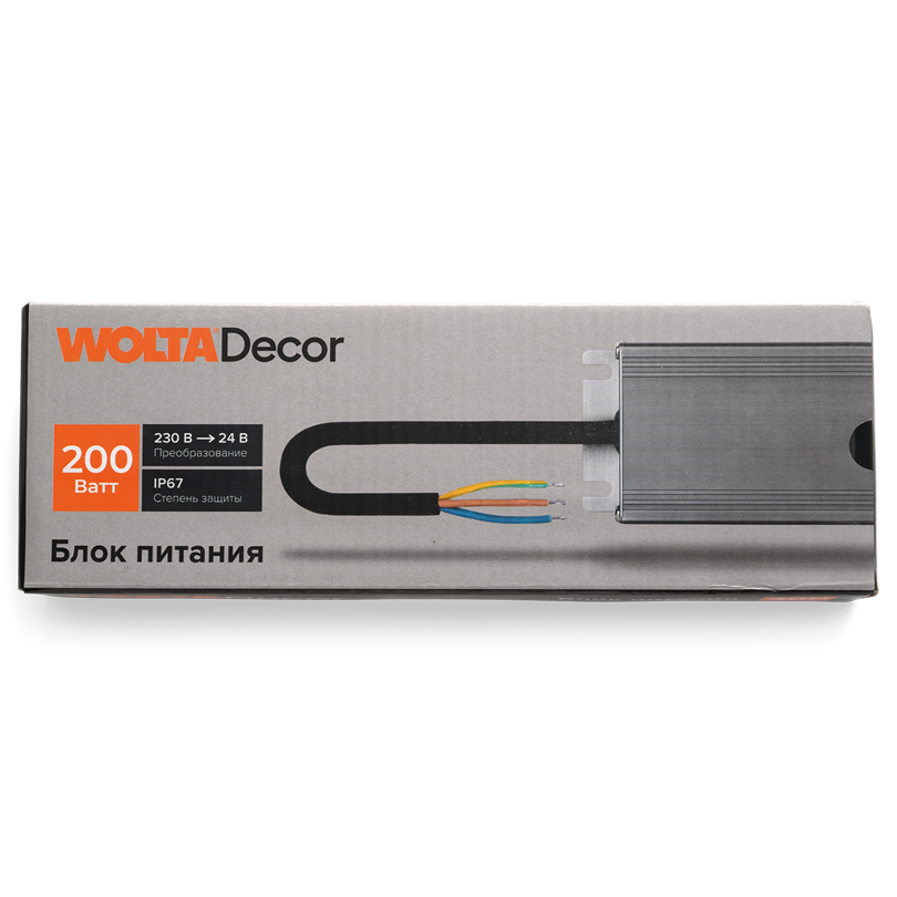Блок питания WOLTA Decor WLD-200W/02-24V 200Вт 24В IP67 220х65х28мм