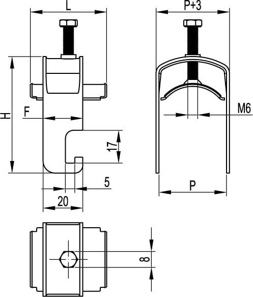Используется для крепления кабелей к С-образным профилям: BPL-21, BPL-41, BPV-21, BPV-41, BPM-21, BPM-41, BPD-21, BPD-41 и консолям из С-образного профиля: BBP-21, BBP-41, BBD-21; возможно применение совместно с прокладной силиконовой BHR8010 для предотвращения повреждения кабеля. Толщина стали 2,5 мм.