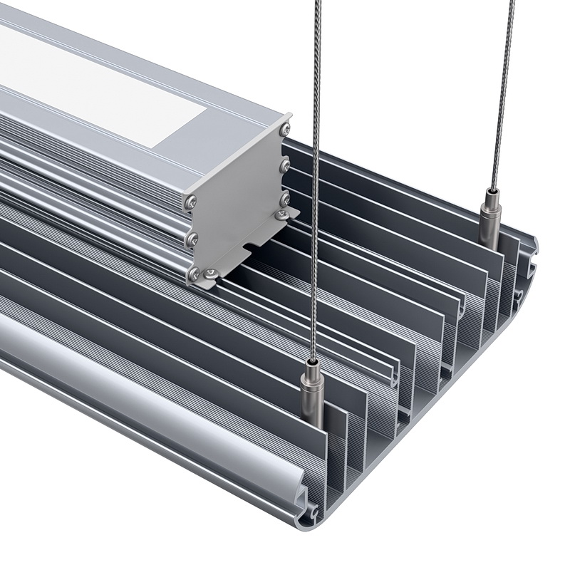 Корпус светильника изготовлен из анодированного алюминия, не подвержен коррозии. Легкое крепление с помощью рым-болтов, возможна замена на тросовые подвесы.